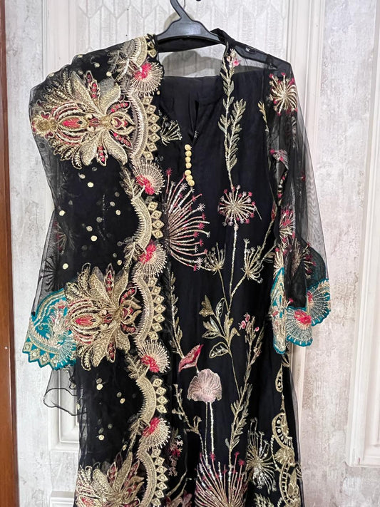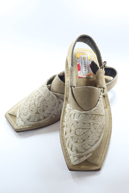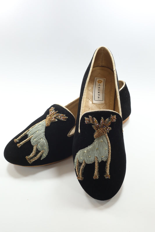 Black Pointed Toe with Hand Embroidered Gold Parinda Slip-ons