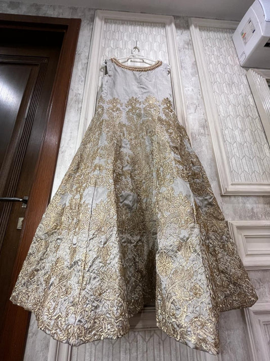 2 Piece Silver Sleeveless Formal Dress Frock Style