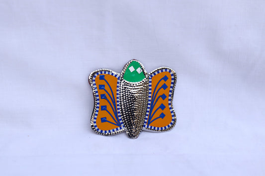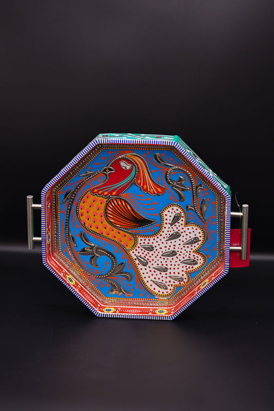 Hexagon teetar tray with chamakpatti. Handmade with beautiful silver, blue & ombre tones.