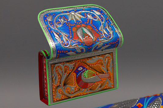 Neeli Phulkari Truck Art Clutch With Yellow Base