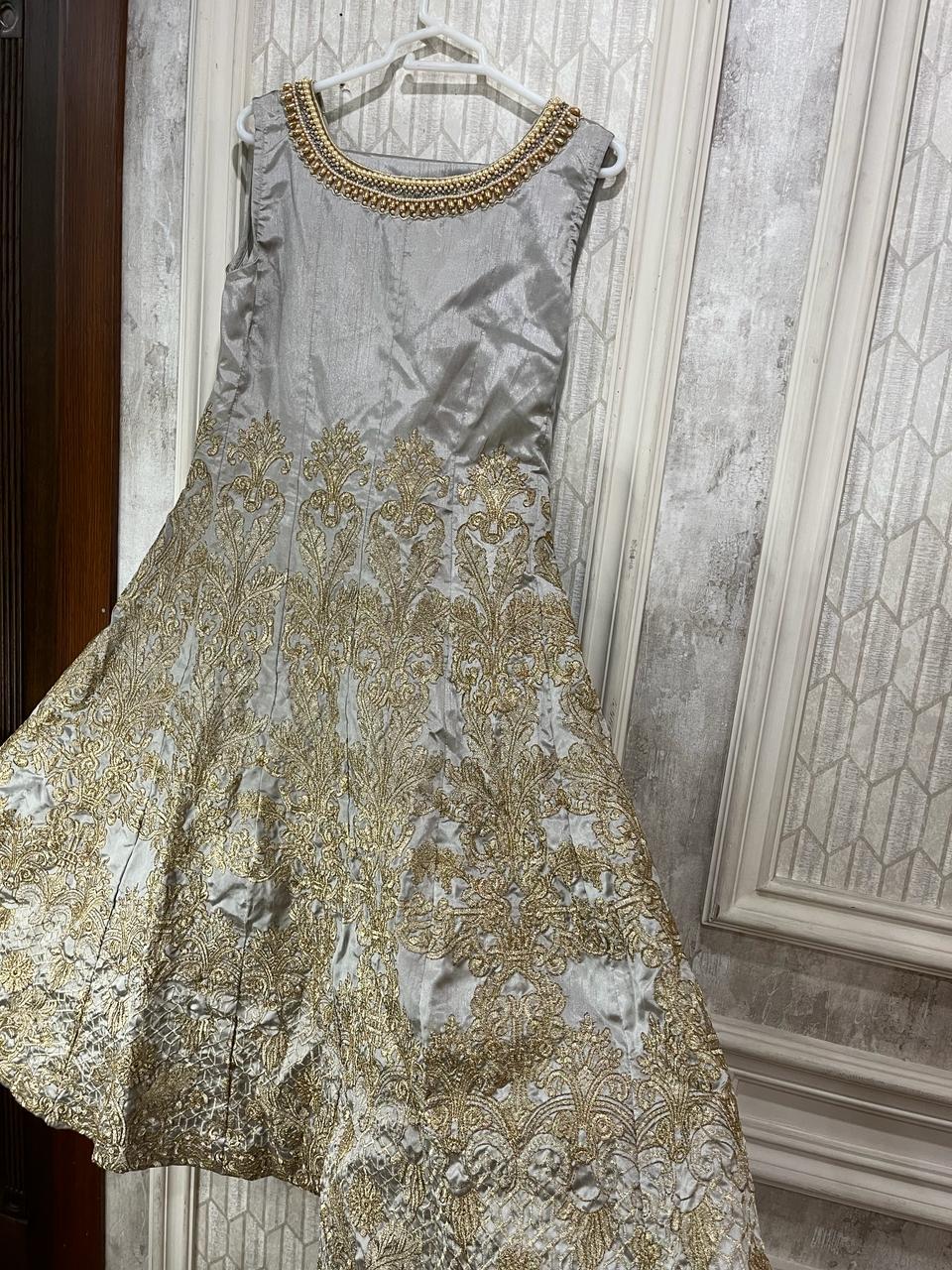 2 Piece Silver Sleeveless Formal Dress Frock Style