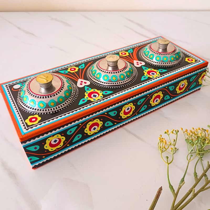 This vibrant, compartmentalized tray presents a delightful trio of chutneys, each offering a unique burst of flavor. Discover the sweetness of a mango chutney, the tangy zest of a green chili and herb blend, and the warmth of a smoky tomato relish. Perfect for adding a touch of excitement to snacks, appetizers, or your favorite main courses. This assorted chutney box is an invitation to explore a world of culinary possibilities.