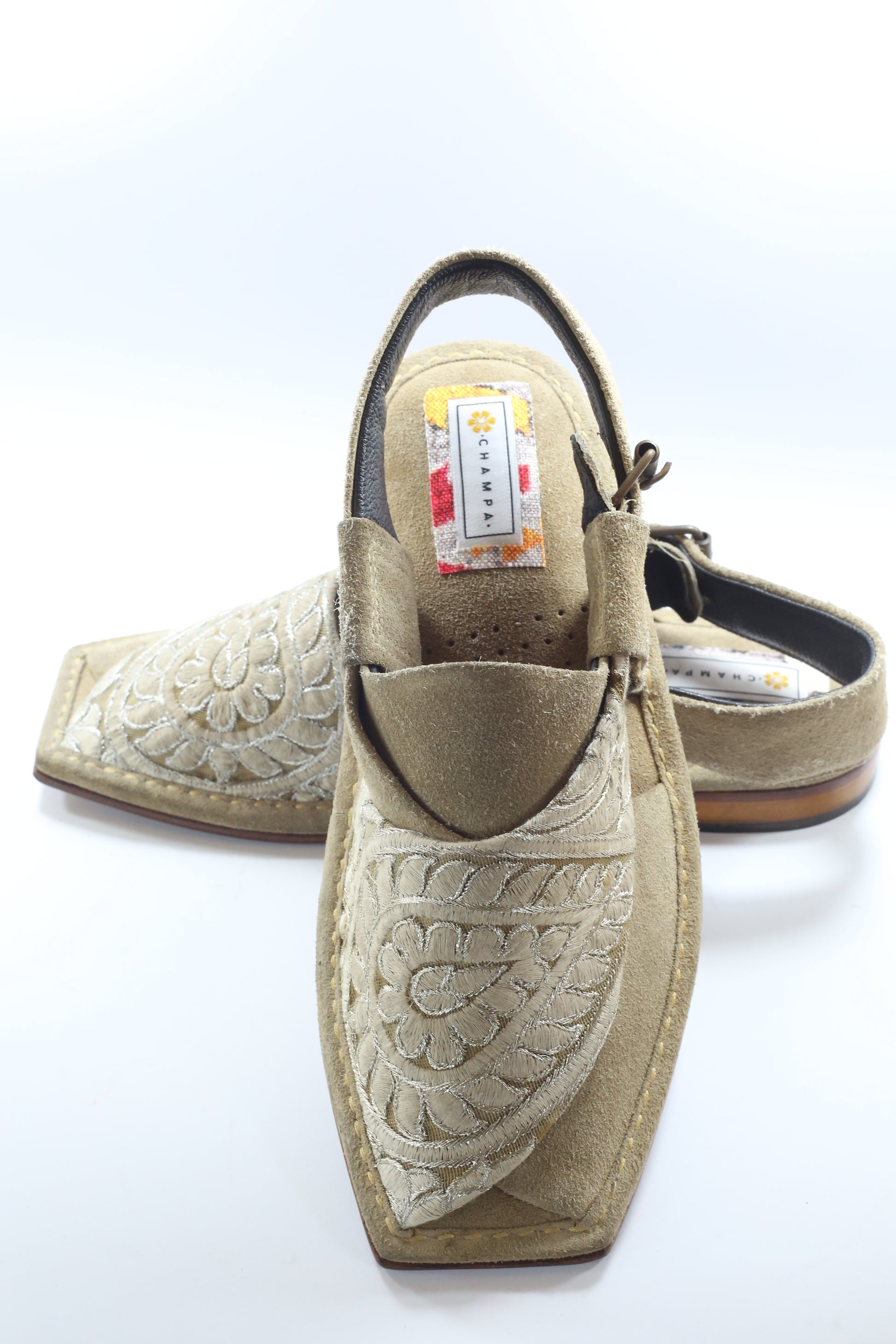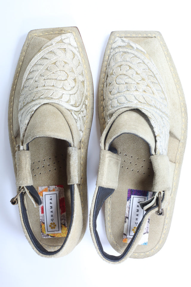 Beige Feathered Embroidered Khairi